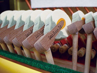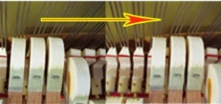 SSSシステム(スライドソフトシステム)は、グランドピアノと同じく“左ペダル”を踏むと「横スライド」します。これで通常の連打性、タッチ感を損なうことなく演奏が可能になりました。